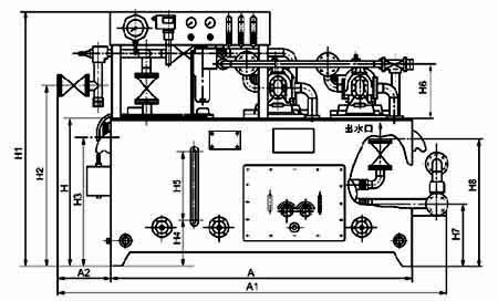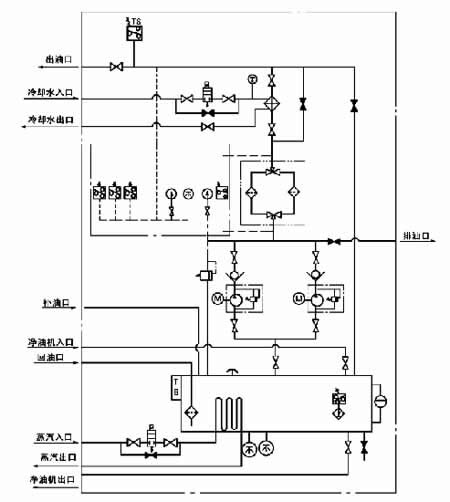 | 1、在雙筒過濾器上裝有差壓訊號器,當過濾器進出口壓差超過0.10~0.15MPa 時,差壓訊號器發出報警信號,用來通知切換工作濾網筒,以便清洗或更換濾網(此裝置設計在冷卻器裝置之前;油粘度較高者更適合)。 2、在冷卻器的進水口裝有一個直讀式溫度計和電磁水閥,用來觀察進水溫度和控制冷卻水的通或斷。在系統的出油口處,裝有一個電接點、溫度計和溫度控制器,用于控制工作油溫;當出口油溫高于某一調定的溫度時,電磁水閥自動開啟,冷卻器投入工作,直到油溫恢復正常為止。如冷卻器已投入工作,系統的油溫繼續上升,達到最高溫度時,溫度控制器發出油溫過熱報警信號。當冷卻器需要更換或維修時,可關閉冷卻器的進出口閥門,打開旁路閥門,油液即不經冷卻器直接送往潤滑點。 3、在油箱上裝有二個電接點溫度計和二個液位開關,當油箱油溫低于某一調定溫度時,電加熱器通電或蒸汽閥門開啟,對油液進行加熱,直到達到正常操作油溫為止。當油箱中油液的溫度低于最低調定溫度時,油泵不能啟動,需對油箱中油液加熱。當油箱的液位達到上限或下限時,液位開關發出報警信號。 4、型號后帶“A”者為有壓力罐的裝置,可滿足發生意外事故或突然停電時,儲存在壓力罐中的油液可作臨時壓力油源向系統短時供油,但需注意壓力罐上的一般單向閥應水平安裝,不得向下安裝(對較小的旋啟式單向閥允許向上安裝),附圖中應作相應改變。 5、配有電控柜和儀表盤,觀察運行參數方便,可實現自動控制和事故報警。 | |||||||||||||||||||||||||||||||||||||||||||||||||||||||||||||||||||||||||||||||||||||||||||||||||||||||||||||||||||||||||||||||||||||||||||||||||||||||||||||||||||||||||||||||||||||||||||||||||||||||||||||||||||||||||||||||||||||||||||||||||||||||||||||