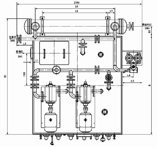 整體式稀油站的供油壓力≤0.4MPa,過濾精度0.08~0.12mm(低粘度時允許采用小值),冷卻水溫度≤30℃,壓力為0.2~0.4MPa,冷卻器進油溫度為50℃,通過冷卻器后溫降≥8℃;采用電加熱器提高油溫。
